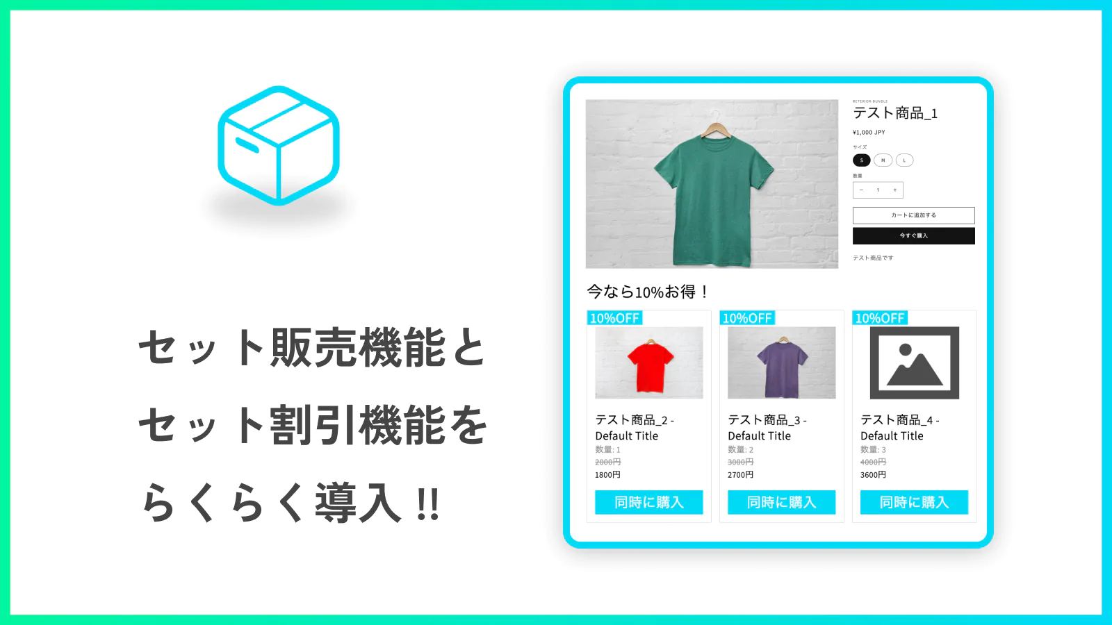 Shopifyのストアにセット販売を導入するなら、アプリを利用するのがおすすめです。以下のようなセット販売の設定が簡単にできます。
