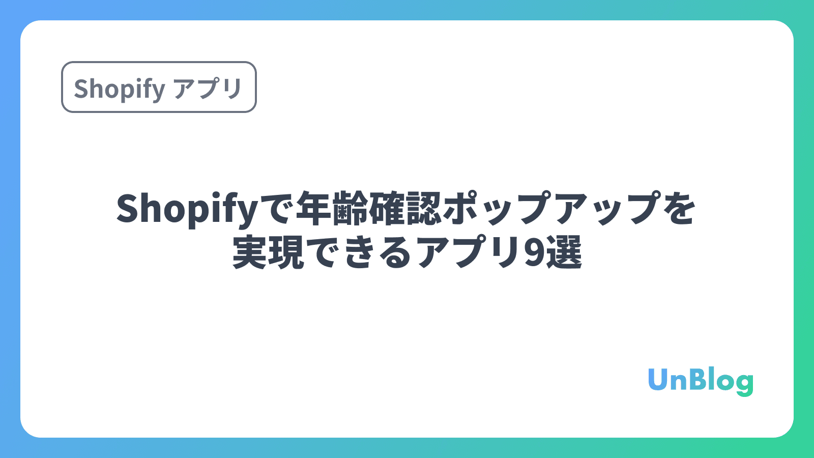 Shopify ストアでアルコールやタバコ、アダルトコンテンツなど、年齢制限のある商品を扱う場合は、訪問者に年齢確認を行う必要があります。今回は、Shopify App Store で提供されている「年齢確認ポップアップアプリ」9 つを紹介します。この記事では、年齢確認ポップアップとは何か、導入する利点、アプリの選び方などを解説しつつ、おすすめの年齢確認ポップアップアプリを詳しくご紹介します。