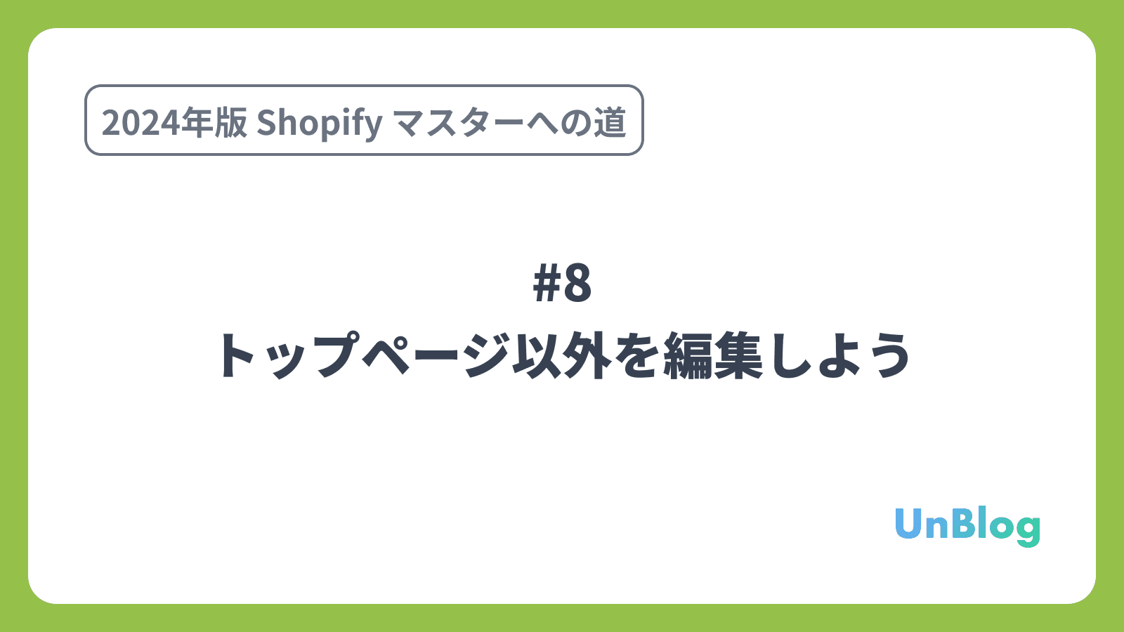 【Shopify マスターへの道】#8 トップページ以外を編集しよう